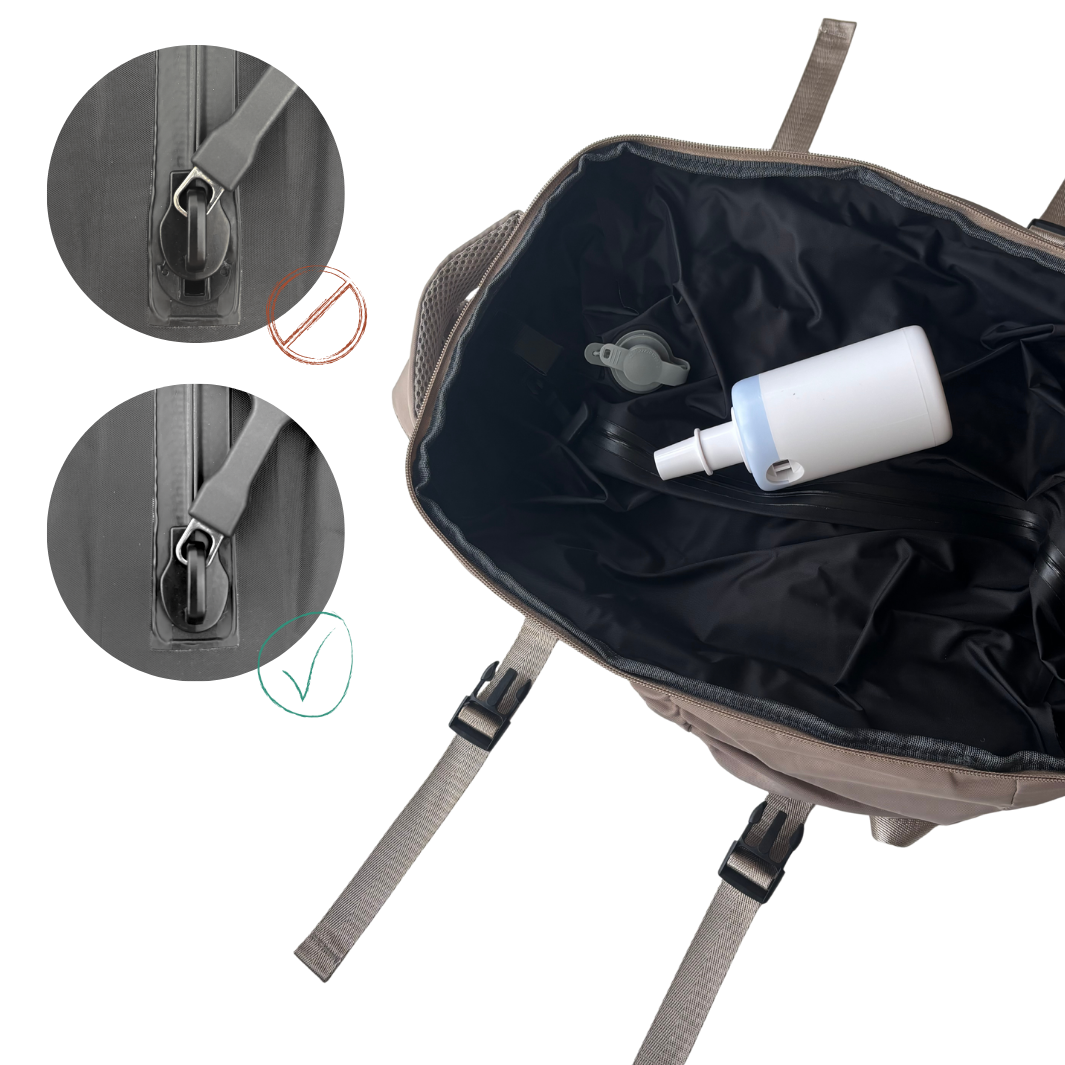 Tissu déperlant et zip étanche : vos affaires restent protégées même sous forte pluie.